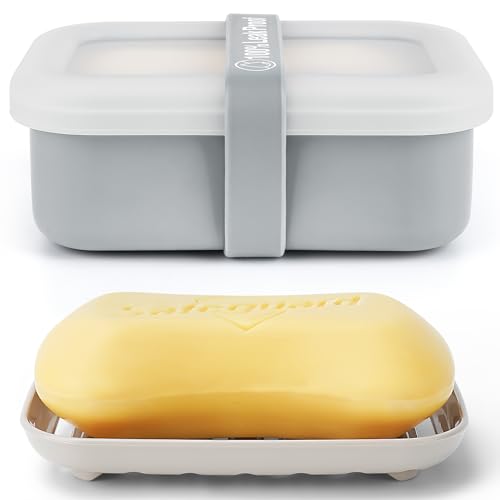 Specification: Compact Leakproof Travel Soap Case with Lid & Silicone Strap – Portable Draining Soap Bar Holder for Gym, Bathroom, Camping – Lightweight Silicone Soap Dish Container (Gray)